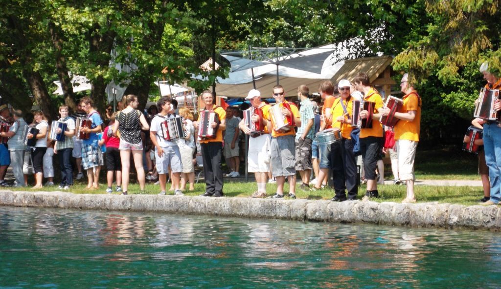 Bled - Zadnji dan tudi letos dobro obiskanih Blejskih dni je dodobra popestril 1. poletni festival harmonikarjev in harmonikaric ob Blejskem jezeru. Udeležilo se ga je kar okoli štiristo glasbenikov - od tistih, ki se z igranjem harmonike preživljajo, do tistih, ki jim je igranje v veselje ali pa se šele spoznavajo s tem instrumentom.