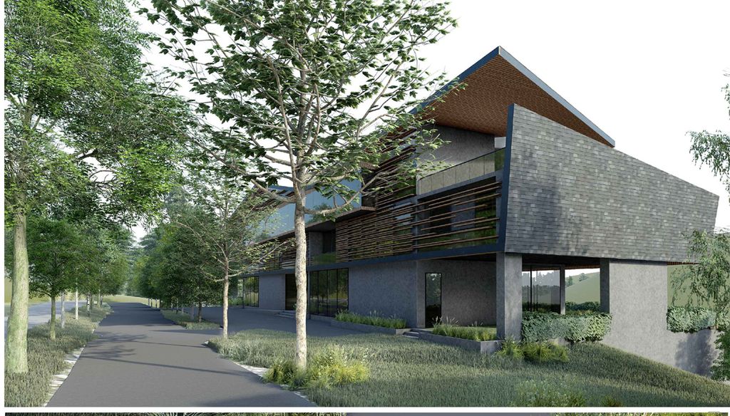 -da zasnova dveh ločenih volumnov in povezovalnega nadstreška lahko dosega faktor zazidanosti max. do 25 %.