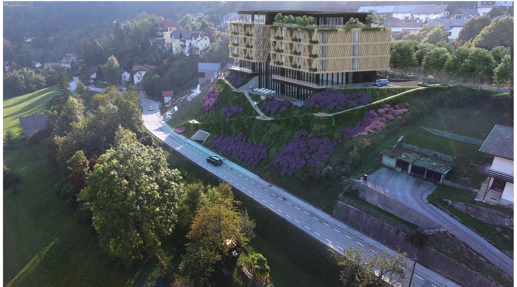 -višinski gabarit na nivoju Kolodvorske ceste ne sme presegati treh vidnih etaž (P+2+T), pod nivojem Kolodvorske ceste pa sta dopustni do dve vidni kletni etaži.