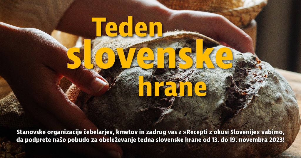 Z željo spodbuditi odgovorno prehransko verigo od njive do krožnika smo stanovske organizacije čebelarjev, kmetov in njihovih zadrug pred letom dni, 16. 11. 2022, na Vlado Republike Slovenije naslovile pobudo, da dan slovenske hrane preraste v teden slovenske hrane. Posameznike, ustanove in medije z brošuro Teden slovenske hrane vabimo, da našo pobudo podprete. V tednu, ko obeležujemo dan slovenske hrane (13.−19. november 2023), vas z »Recepti z okusi Slovenije« spodbujamo, da tradicionalne slovenske jedi iz lokalnih sestavin s ponosom umestite v osrčje jedilnikov – tako v javnih ustanovah, gostinskih obratih kot v toplini vašega doma. Naj vsak grižljaj odseva bogastvo in raznolikost slovenskih polj in vrtov, travnikov, pašnikov, trajnih nasadov ter gozdov. Ker lahko samo s skupnim sodelovanjem krepimo slovensko podeželje in gospodarstvo, ohranjamo slikovito krajino in biotsko raznovrstnost ter zidamo zdravo prihodnost vseh nas.