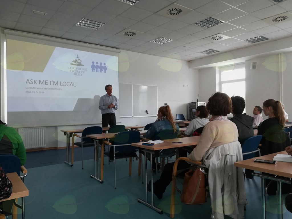 Bled - Na letošnje poletje se na Bledu pripravljajo tudi s projektom Vprašaj me, tu sem doma oziroma Ask me I'm local. Včeraj so pripravili prvo izobraževanje za bodoče informatorje. O tem, kaj Bled pomeni v širšem slovenskem in svetovnem prostoru in kako turisti dojemajo Bled je spregovoril župan Janez Fajfar, ki je tudi ambasador projekta. O splošnih pravilih vedenja na Bledu in projektu Zero waste je govoril direktor Infrastrukture Bled, Janez Resman, o turizmu na splošno direktor Turizma Bled, Tomaž Rogelj, o vprašanjih, ki jih turisti najpogosteje zastavljajo, pa Vanja Piber s Turističnega društva Bled. Vodja Medobčinskega inšpektorata in redarstva občin Bled, Bohinj in Železniki, Primož Lah, pa je predstavil najpogostejše kršitve odloka o javnem redu in miru.