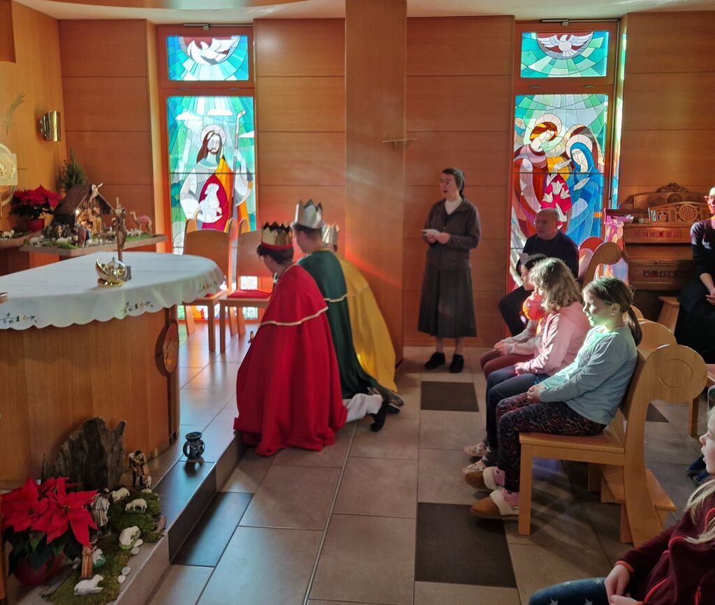 Najprej smo s tremi kralji počastili Jezusa, nato pa je sestra Agata zanimivo in slikovito predstavila svoje delo: sredi Amazonskega pragozda že več kot 40 let skupaj s sosestrami ustanavlja in vodi šole, pomaga domačinom s hrano ter spodbuja ohranjanje indijanske kulture in dediščine. Tako živi salezijansko poslanstvo, ki daje prednost najbolj revnim in tistim v skrajnih okoliščinah. Tudi v ta misijon vsa leta prihajajo sredstva, ki jih otroci v Sloveniji zbirajo za otroke v misijonih.