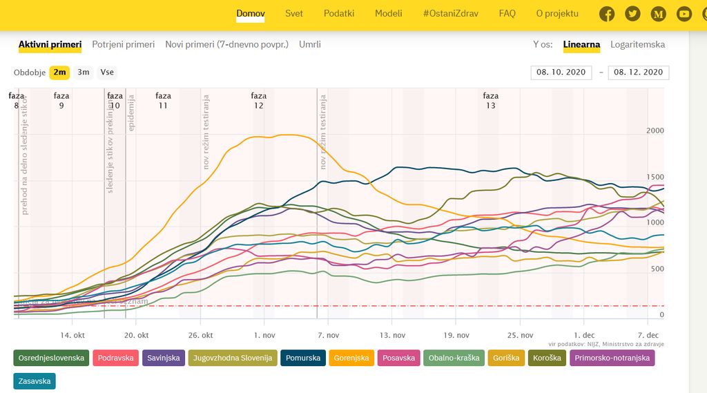 Po podatkih covid sledilnika ( https://covid-19.sledilnik.org/sl/stats) v torek, 8. decembra, novih okužb na Zgornjem Gorenjskem niso odkrili le v občini Gorje. Kljub temu je na grafu 14- dnevne pojavnosti okužb jasno videti, da gre Gorenjski bolje od večine slovenskih regij.