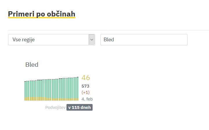 Po podatkih covid sledilnika (https://covid-19.sledilnik.org/sl/stats) so v četrtek, 4.2., v občini Bled potrdili eno novo okužbo.