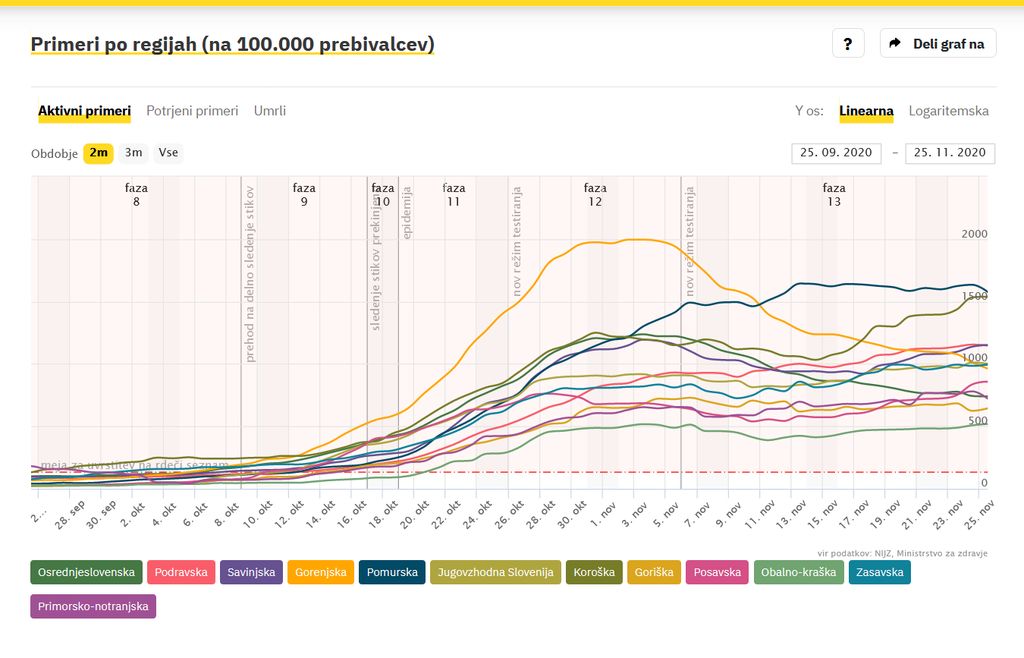 Kljub tem podatkom se stanje na Gorenjskem hitro izboljšuje, kar kaže tudi graf s podatki covid sledilnika. V občini Bled je do sedaj uradno covid prebolelo 248 ljudi.
