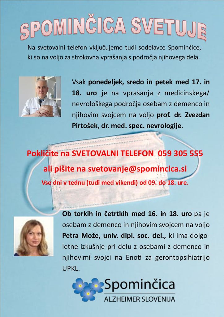 Združenje ima status humanitarne organizacije in status društva, ki deluje v javnem interesu na področju socialnega varstva. V času epidemije je Spominčica poslala nekaj nasvetov in navodil za ljudi z demenco in njihove svojce. Najdete jih na fotografijah.