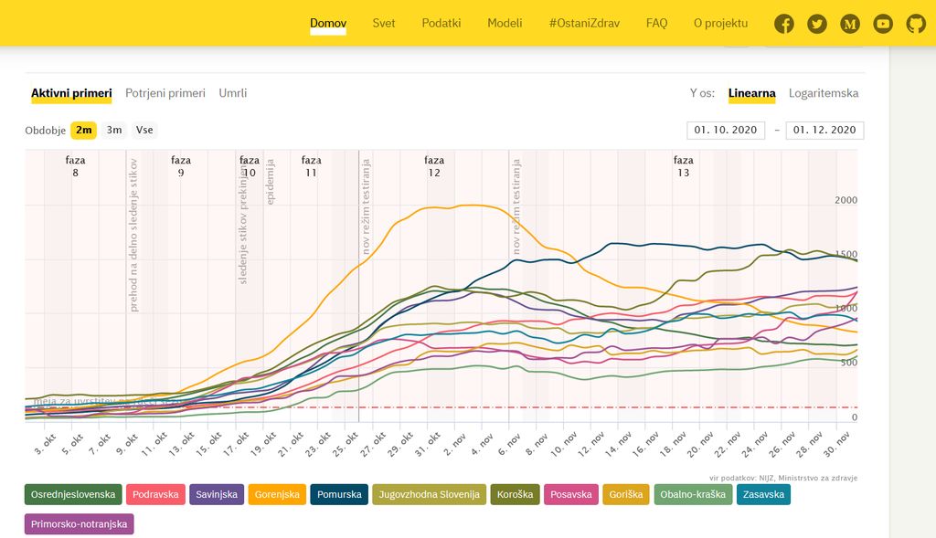 Medtem ko so v torek v občini Bled potrdili šest novih okužb, je Gorenjska iz najbolj okužene regije v državi postala ena najmanj okuženih, število okužb pa po podatkih covid sledilnika ( https://covid-19.sledilnik.org/sl/stats) še vedno pada.