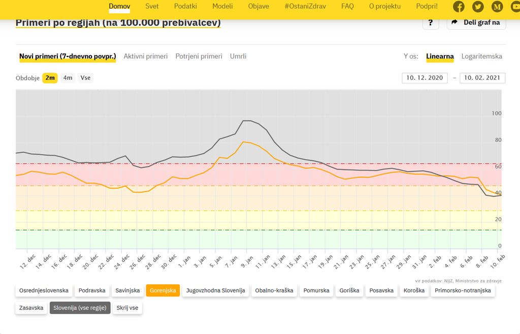 Bled 4 nove, 51 aktivnih; Gorje 1 nova, skupaj 12 aktivnih; Bohinj 1 nova, skupaj 21 aktivnih; Kranjska Gora 0 novih, skupaj 22 aktivnih; Jesenice 5 novih, skupaj 114 aktivnih; Žirovnica 4 nove, skupaj 36 aktivnih; Radovljica 13 novih, skupaj 147 aktivnih okužb.