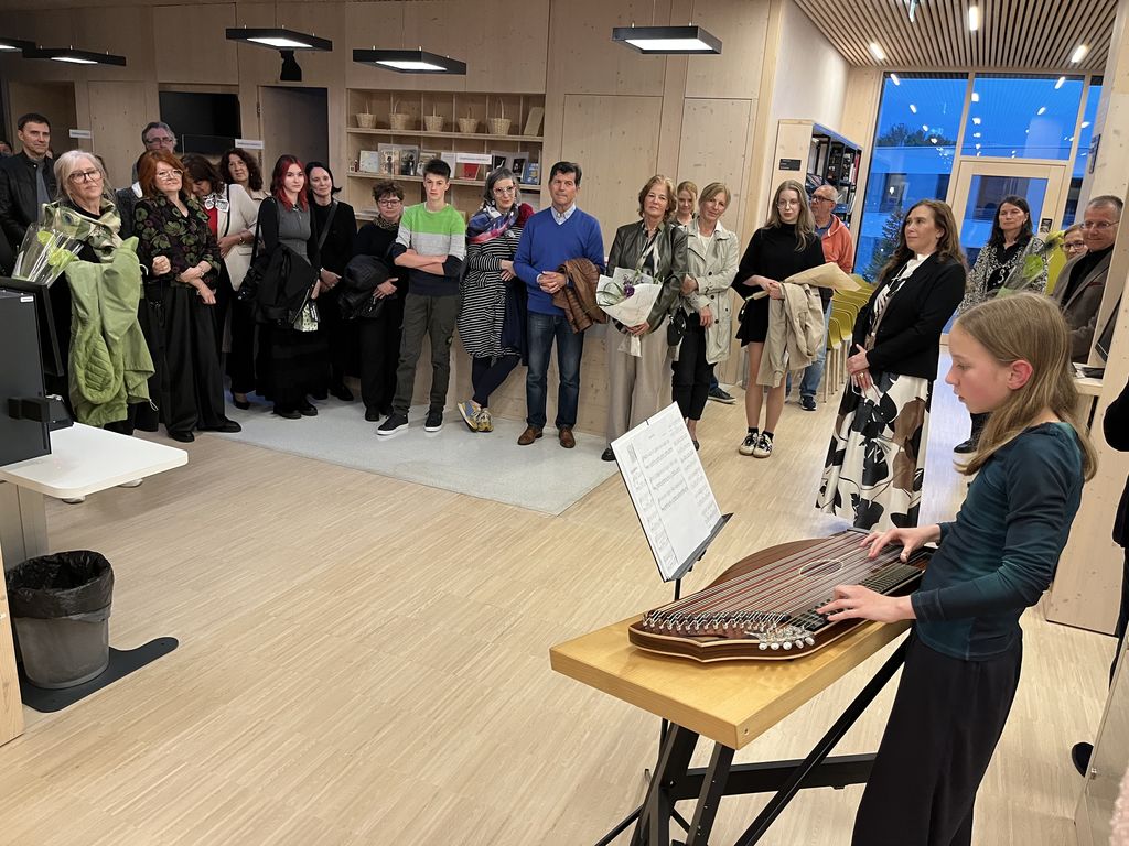 V mesecu maju si lahko v naši knjižnici ogledate razstavo Spogledovanja z modo, ki jo je pripravila mag. Karmen Klobasa. 8. maja ste lahko prisluhnili predstavitviistoimenske knjige in si ogledali otvoritev razstave, ki jo je prav prijetno pospremila mlada citrarka Laura Jeram iz Glasbene šole Radovljica. Po ogledu razstave pa smo si privoščili slaščice in pijačo ter se z avtorico sproščeno pogovarjali še pozno v večer. Razstavo si lahko ogledate še cel junij. Prisrčno vabljeni.