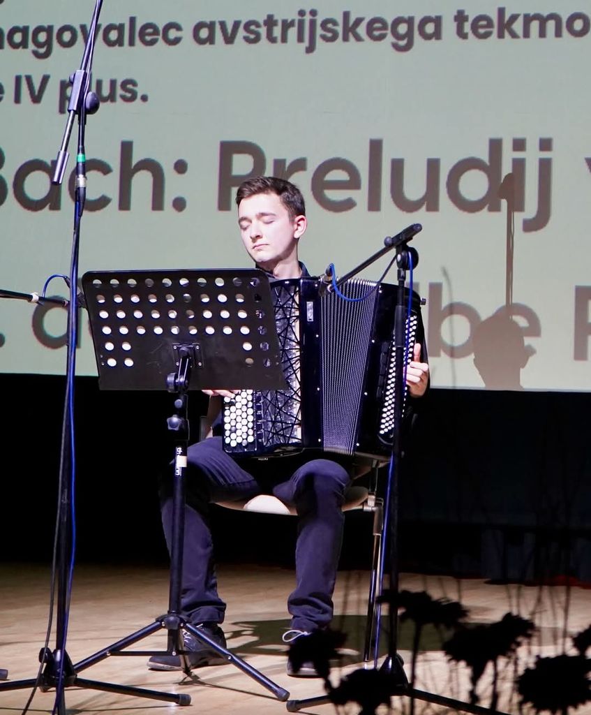 Jure Pavlič, že 14 let navdušen harmonikar. Pri sedmih letih je začel svojo glasbeno izobrazbo v Radovljici. Po osmih letih šolanja v glasbeni šoli, najprej pod vodstvom Antona Iskre in kasneje Mitje Jeršiča, je želel svoje znanje še dodatno razvijati. Zato se je odločil nadaljevati izobraževanje pri profesorju Romanu Pechmannu v sklopu programa »Exzeenzcluster Musik« na GMPU Celovec in ga uspešno zaključil. Od oktoba 2023 je študent na zasebni univerzi Gustava Mahlerja v Celovcu in študira harmoniko pri prof. Pechmannu. Redno se udeležuje različnih tekmovanj in koncentrira po Sloveniji in Avstriji. Junija 2024 je postal državni zmagovalec avstrijskega tekmovanja »Prima la musica« v kategoriji harmonike IV plus. V februarju je skupaj s pevcem Thomasom Salzmannom nastopil na treh koncertih s skladbami Huga Wolfa, eden izmed njih bo tudi 22. 2. 2025 v Radovljiški baročni dvorani.