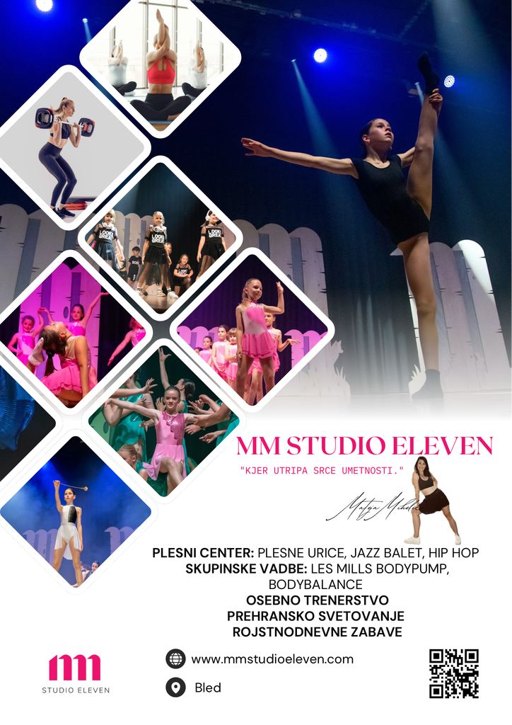 V MM Studiu Eleven ponujamo raznolike plesne programe in vodene vadbe za vse starostne skupine. Otroci in mladostniki lahko uživajo v plesnih uricah, jazz baletu in hip hopu. Udeležujemo se tekmovanj Plesne zveze Slovenije in plesnih festivalov, kjer ustvarjamo nepozabne trenutke na plesnih odrih. Postani del naših plesnih skupin, tekmuj in nastopaj z nami!