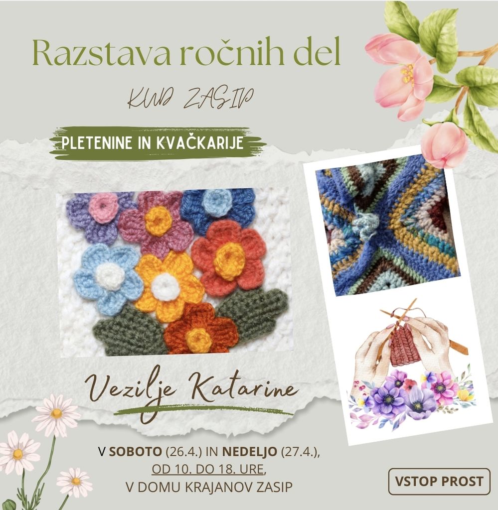 Popotovanja skozi veziljsko dediščino se kljub zavidljivim starostim gospa še kako nadaljujejo po tedenskih srečanjih na krožkih in s skrbno pripravljenimi razstavami, nad katerimi bdi  povsod v kraju zelo aktivna vodja Mira Zupan s svojimi spremljevalkami. Tokrat se predstavljajo 26. in 27. aprila v Domu krajanom s samostojno razstavo na temo "pletenje in kvačkarije". Prisrčno vabljeni na ogled izredno bogate dediščine - izdelkov pridnih rok naših žena.                                                  Mag. Dragica Marta Sternad Kenda
