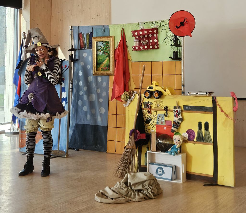 Pomlad v knjižnici smo popestrili z gledališko predstavo za otroke. Obiskala nas je navihana in zabavna Super čarovnica Mici, ki je s svojo prisrčnostjo, norčijami in ščepcem čarobnega prahu očarala vse prisotne. Otroci so navdušeno spremljali njene dogodivščine, se smejali, ploskali in na koncu še dolgo klepetali o njenih čarovniških trikih. Pripravili smo tudi predstavitev prikupne slikanice Gumbek se je izgubil avtorice Sonje Koranter in ilustratorke Vesne Zorko.