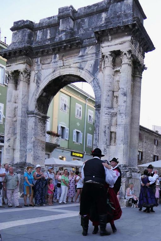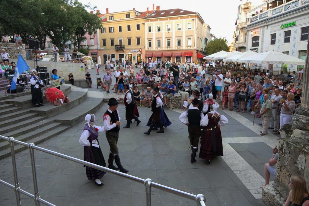 Zvečer ob 20.30 smo imeli nastop. Nastopili smo na prostem, na trgu pred »Zlatimi puljskimi vrati«. Vročina tudi zvečer ni popustila in bilo nam je vroče, ko smo v gorenjskih narodnih nošah plesali razgreti publiki. Po nastopu pa smo se prepustili užitkom ob poslušanju slovenskih in hrvaških pesmi v izvedbi Pevskega zbora Encijan.