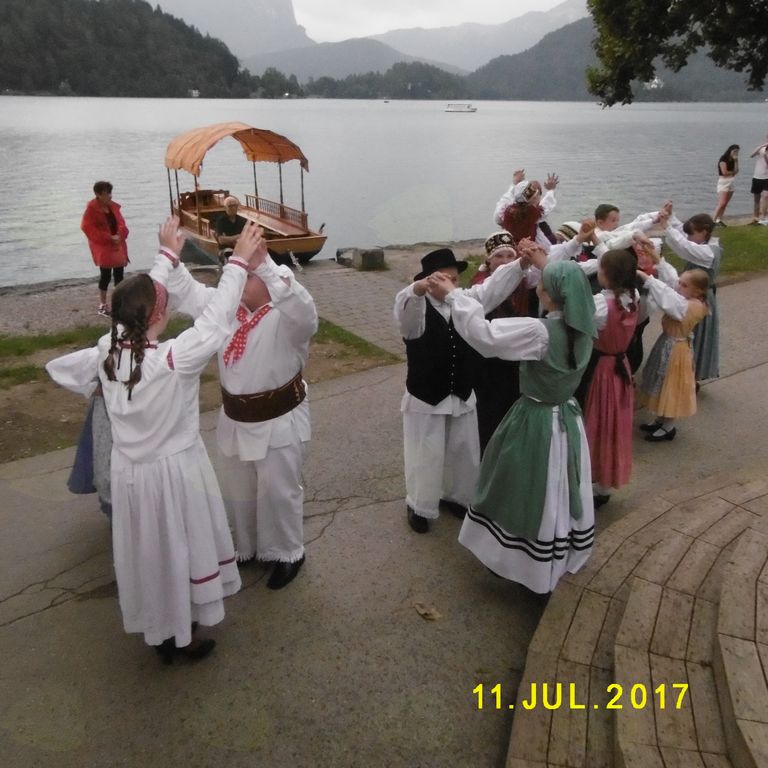 V torek, 11. julija pa smo na Bledu gostili otroško folklorno skupino »Nageljčki« iz Toronta v Kanadi. Sedemnajst dečkov in deklic v starosti šest do trinajst let je pred Vilo Prešeren zaplesalo plese iz Dolenjske, Štajerske, Prekmurja, Bele Krajine in Gorenjske. K sreči so nastop opravili še pred prihajajočim dežjem. In kljub slabemu vremenu je njihov nastop z burnim aplavzom pospremilo kar nekaj gledalcev. Verjamemo, da bo Bled mladim plesalcem, njihovi mentorici Sabini in spremljevalcem kljub slabemu vremenu, ostal v lepem spominu.