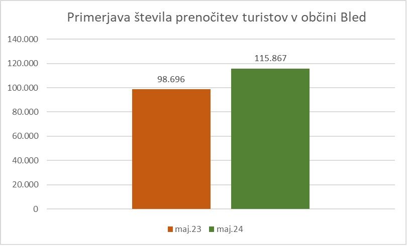 V letošnjem maju smo v primerjavi z lanskim zabeležili 22 odstotno povečanje števila gostov ter 17 odstotno rast ustvarjenih nočitev.