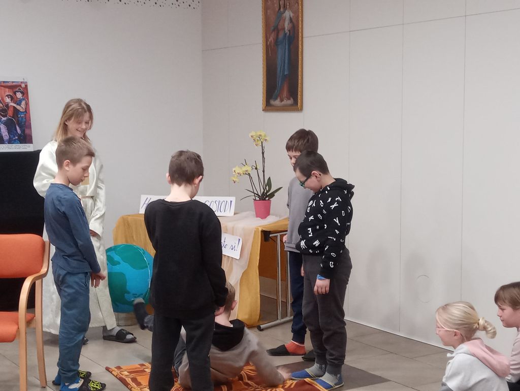 Na oratorijskem dnevu so otroci zaigrali ta odlomek; ob tem so se učili, kako naj bodo pozorni do potreb drugih in hvaležni tistim, ki so pozorni do njih.