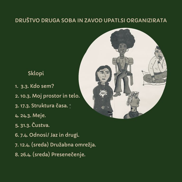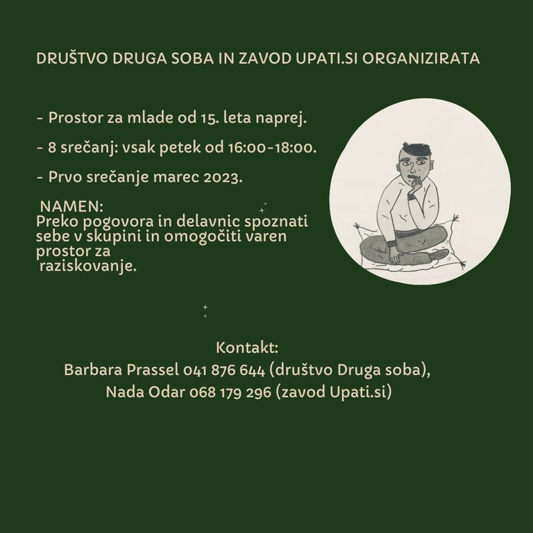 Kje: Društvo Druga soba, Ljubljanska 15 ali Zavod Upati.si