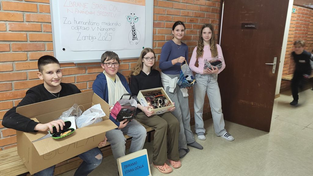 Naša šola se je ponovno izkazala kot skupnost s posluhom za dobrodelnost in pomoč tistim, ki jo najbolj potrebujejo. Šolski parlamentarci so z veseljem prisluhnili prošnji skupine mladih študentov medicine, ki se v okviru prostovoljnega dela odpravljajo v afriško vas Nangoma. Med njimi je tudi naša bivša učenka Hana, kar nam je akcijo naredilo še bolj osebno in srčno. Študenti medicine se odpravljajo v Zambijo, natančneje v vas Nangoma, kjer bodo delovali predvsem v tamkajšnji misijonski bolnišnici. Tam se bodo trudili nuditi čim boljšo strokovno zdravstveno oskrbo na oddelkih, ki zajemajo različne veje medicine – od interne medicine in pediatrije do kirurgije in stomatologije. Njihovo delo ne bo omejeno le na bolnišnico, saj si želijo pomagati tudi širši okolici. V bližnjih vaseh in šolah bodo organizirali različne programe ozaveščanja in zdravstvene vzgoje, s čimer bodo prispevali k izboljšanju splošnega zdravstvenega stanja prebivalcev. Njihova pobuda je bila preprosta, a izjemno pomembna – zbiranje vseh vrst očal, tako korekcijskih kot sončnih, saj so ta v Afriki težko dostopna in za mnoge nedosegljiva. Naš odziv je bil izjemen. Očala so prinašali učenci iz razredne in predmetne stopnje, pridružili so se tudi učitelji, drugi zaposleni in celo učenci s podružničnih šol. Vsak par očal pomeni novo priložnost za boljši vid in kakovostnejše življenje nekoga v Nangomi. Poleg očal smo zbrali tudi nekaj evrov za kritje stroškov prevoza, s čimer smo še dodatno podprli prizadevanja prostovoljcev. Hana je bila nad zbrano količino očal navdušena in iskreno hvaležna za naš prispevek. Obljubila je, da se bo po vrnitvi oglasila na šoli ter nam predstavila svoje izkušnje in dobrodelno poslanstvo, ki ga opravljajo v Afriki. Takšne akcije nam vedno znova potrjujejo, da s skupnimi močmi lahko pomagamo širiti dobroto daleč preko meja naše šole, našega kraja in države. Hvala vsem, ki ste se odzvali in prispevali svoj del k tej plemeniti pobudi.