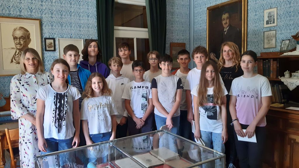 V četrtek, 25. maja 2023, je trinajst naših učencev sodelovalo pri snemanju dokumentarnega filma o prvem rektorju slovenske univerze, prof. dr. Josipu Plemlju, pod vodstvom režiserja Mirana Zupančiča. Na povabilo profesorja matematike dr. Boštjana Kuzmana, da bi pri tem projektu sodelovali tudi mladi matematiki, smo se z veseljem odzvali in doživeli zanimivo izkušnjo. Dr. Boštjan Kuzman nam je razkazal Plemljevo sobo, predstavil njegova dela in nagrade, nato je sledilo še nazorno predavanje o Plemljevem življenju. Za zanimivost nam je pripravil tudi geometrijski problem o načrtovanju pravilnega petkotnika, da so učenci občutili, da je matematika tudi zabavna in da ni vsak problem težak. Snemanje je potekalo sproti ob spontanem druženju.