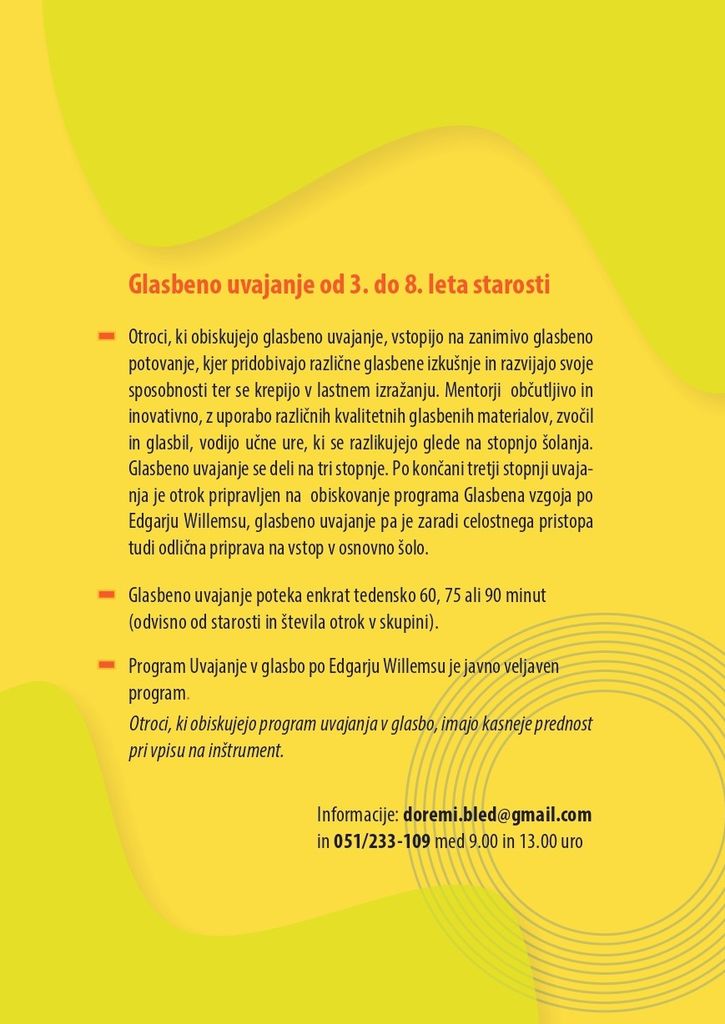 Za vpis ali dodatne informacije nam pišite na elektronski naslov doremi.bled@gmail.com ali nas pokličite na telefon 051 233 109.