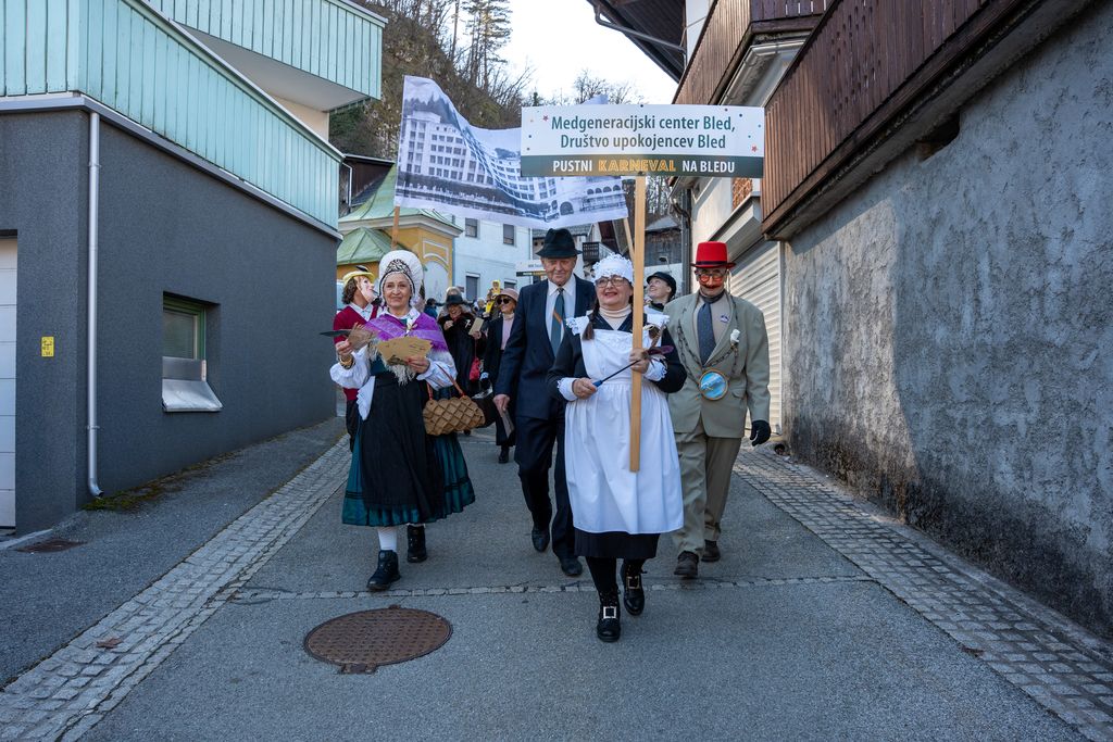 Pustna povorka ima na Bledu dolgo tradicijo. Nekdaj je na ulice privabljala več tisoč obiskovalcev, dosegla vrhunec kmalu po letu 1970, nato pa potekala v okrnjeni obliki. Leta 2015 so jo ponovno obudili na pobudo takratnega podžupana, danes župana Občine Bled, Antona Mežana. Letos je na ulice Bleda privabila 400 mask ter 3500 obiskovalcev.