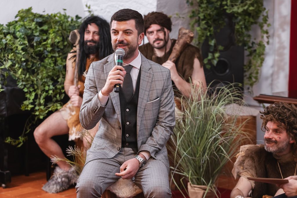 Gostujočo razstavo je predstavil njen avtor Jurica Sabol, ravnatelj Muzejev Hrvaškega Zagorja, ki je obiskovalce tudi popeljal po razstavi in jim postregel z zanimivimi podrobnostmi. Oblikovalci razstave so npr. za poustvaritev neandertalčeve jame v razstavnem prostoru, v mansardo Blejskega gradu znosili kar 200 kg peska!