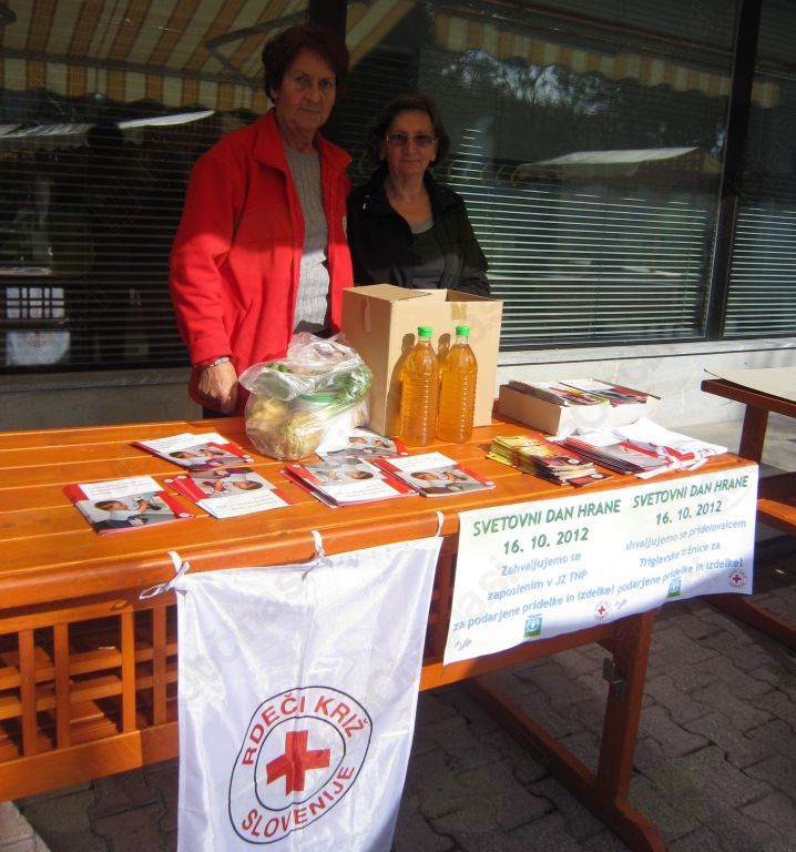 Bled, 24. oktober - Triglavski narodni park je na Triglavski tržnici 20. 10. organiziral zbiranje pridelkov in izdelkov za ljudi, ki živijo v pomanjkanju. Povabilu so se odzvali ponudniki Triglavske tržnice in zaposleni v TNP. Zbrali smo zelenjavo, sadje, marmelade, olje, mlečne izdelke in žita. Prostovoljki Območnega združenja Rdečega križa Radovljica sta pridelke razdelili ljudem, ki trenutno nimajo dovolj sredstev za popoln dnevni obrok. Z zbranimi dobrinami so želeli vsaj malenkost pomagati dopolniti jedilnik ljudem, ki živijo v pomanjkanju in hkrati opozoriti tudi na pomen prehranjevanja z živili, ki so pridelani na ljudem in naravi prijazen način. Akcija sovpada s svetovnim dnem hrane (16.10.), ki opozarja na lakoto in poziva k deljenju hrane in drugih dobrin, je v sporčilu za javnost zapisala Alenka Petrinjak s Triglavskega narodnega parka.