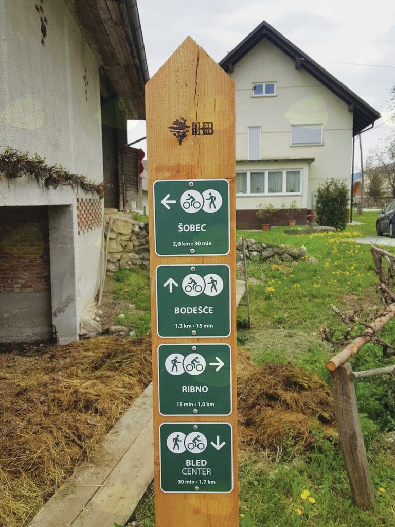nalogo, da celovito nadomesti obstoječ, dotrajan sistem označevanja sprehajalnih poti po Bledu in okolici. Tako je na osnovi obstoječega stanja poti in z nekaj prilagoditvami Martin Šolar po naročilu Turizma Bled pripravil prenovljen koncept poti z oznakami na novih macesnovih stebričkih, skladno s celostno podobo destinacije Bled. Postavljanju 180 stebričkov s 450 oznakami na terenu v teh dneh izvaja GG Bled. V kratkem pa sledi že priročen zemljevid s kratkim vodičem po priporočenih smereh.