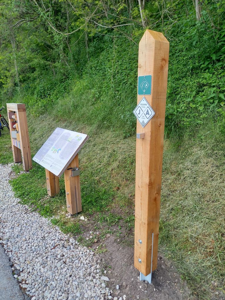 Blejski žig za Juliano Trail na tipskem stebričku opremljenem s posebno tablico, ki opozarja na žig, se nahaja ob Veslaški promenadi tik nad Grajskim kopališčem, kjer je tudi odcep Riklijeve poti na grad. Pohodniki, ki zbirajo žige, morajo s seboj imeti blazinico za žige s črnilom. Žig je lahko dobiti tudi v obeh blejskih TICih, v Triglavski roži in na Turističnem društvu Bled. Na teh dveh mestih lahko le za 4 EURe kupite vodnik Juliana Trail z dnevnikom za žige.