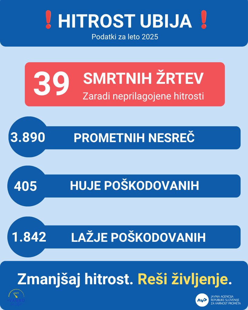 Začenja se nacionalna preventivna akcija Hitrost(13.-19. april), s katero Agencija za varnost prometa in Policija opozarjata na tveganja prehitre vožnje.