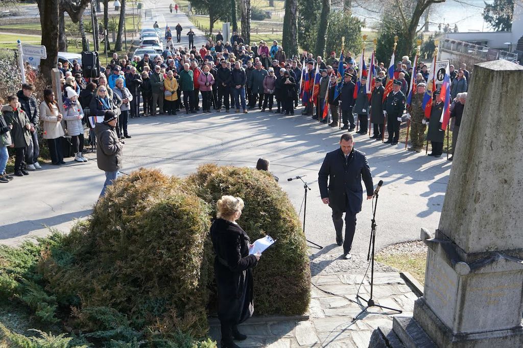 Na Bledu so pohodnike, za katere je blejska Festivalna dvorana ponovno ostala zaprta, a jim je gostoljubje izkazal Jani Klemenčič v svojem lokalu (Hvala, Jani!), pričakali praznični krofi in topel čaj. Ob pol enajstih so se pri Prešernovem spomeniku pohodnikom pridružili še drugi obiskovalci in skupaj so, ob postrojenih veteranskih in domoljubnih praporih, praporščake je vodil namestnik praporščaka ZVVS Jože Klun, prisluhnili kulturnemu programu. Zbrane je pozdravil blejski župan Anton Mežan, slavnostni govornik je bil Borut Sajovic, prisotna sta bila tudi predsednik ZVVS generalmajor Ladislav Lipič in minister za notranje zadeve Boštjan Poklukar. Recitacije učencev blejske osnovne šole Medeje Uršič , Jena Aleksandra Berceta, Jakoba Ulčarja in Maksa Eržena pod mentorstvom Mete Pazlar, ubrano petje učenke Malajke Katrašnik ter igranje Špele Šemrl na harmoniko so pohodnike spomnili, zakaj se prav na ta dan podajo na pot. S svojo recitacijo o zanemarjanju slovenskega jezika je pred nadaljevanjem poti proti Vrbi presenetil tudi vodja pohoda Edi Ferkolj. Program je povezovala Branka Smole. Po proslavi je delegacija veteranov iz Gornje Radgone in Zgornje Gorenjske položila lovorov venec in cvetje na grobove Janeza Svetine, Mira Podjeda in Marije Stare.