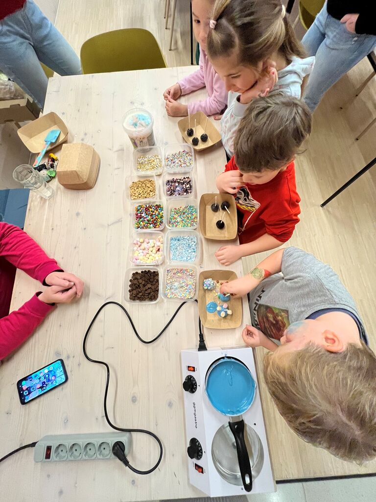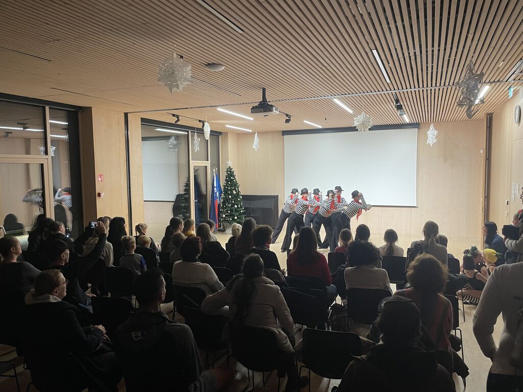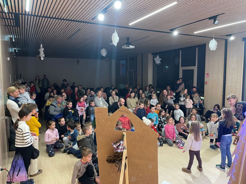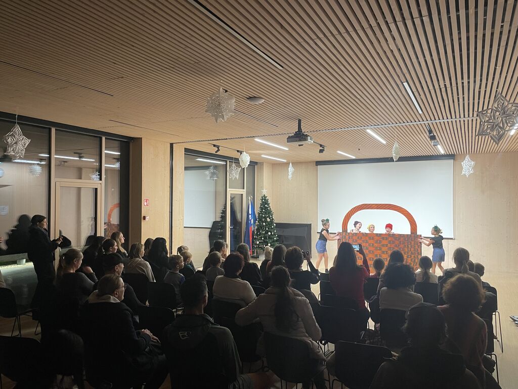 V 1. nadstropju je potekalo celo popoldne ustvarjalno vzdušje. Otroci so pod vodstvom Društva Žarek izdelovali praznične voščilnice, skupaj pa smo zavijali darila za projekt Božiček za en dan. V kuhinji je Veronika iz Sladkosneda vodila sladko delavnico okraševanja cake-popsov, ki je navdušila tako najmlajše kot odrasle. Dan se je pozneje umiril z večerno zvočno meditacijo s Tino Luznar, ki je prostor napolnila s toplino, mirom in prijetno energijo.