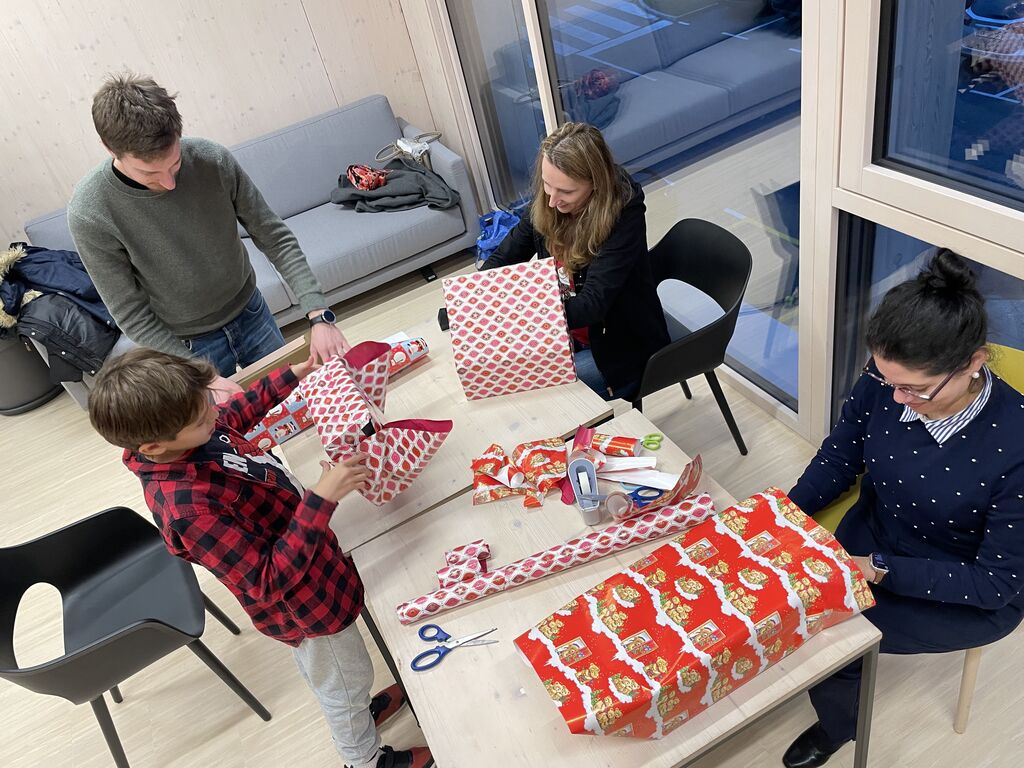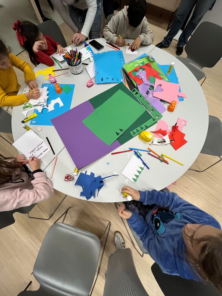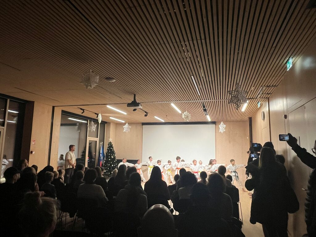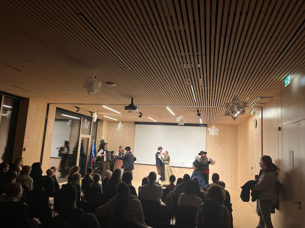 V 1. nadstropju je potekalo celo popoldne ustvarjalno vzdušje. Otroci so pod vodstvom Društva Žarek izdelovali praznične voščilnice, skupaj pa smo zavijali darila za projekt Božiček za en dan. V kuhinji je Veronika iz Sladkosneda vodila sladko delavnico okraševanja cake-popsov, ki je navdušila tako najmlajše kot odrasle. Dan se je pozneje umiril z večerno zvočno meditacijo s Tino Luznar, ki je prostor napolnila s toplino, mirom in prijetno energijo.