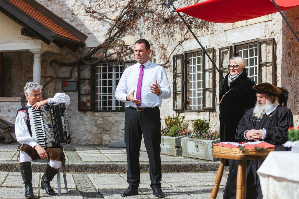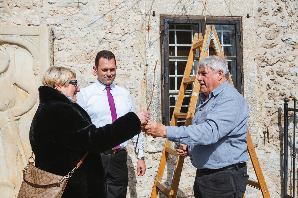 Petek, 10. marca, je minil v znamenju rezi stare trte žametovke oziroma modre kavčine z mariborskega Lenta tudi na Blejskem gradu.