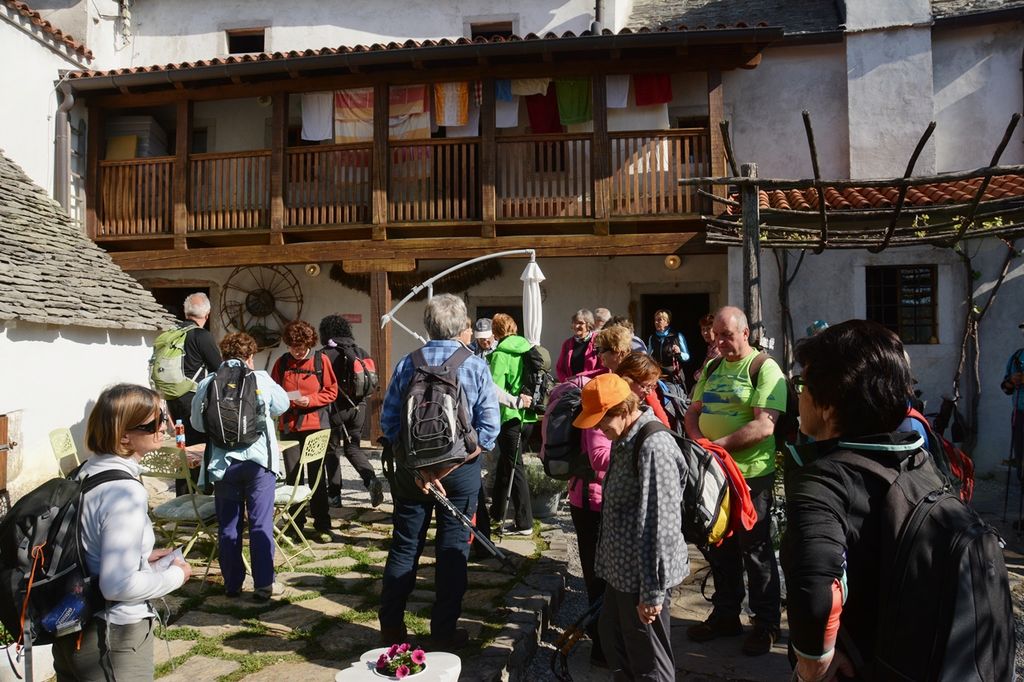 Kar 35 se nas je zjutraj ob 7h zbralo na avtobusni postaji. Pot nas je vodila mimo Ljubljane do Ravbarkomande, kjer smo se okrepčali z obvezno jutranjo kavico. Nadaljevali smo do Sežane in naprej do zanimive vasi Pliskavica. Vas je dobila ime po ptici pliski, ki se je tiste čase zadrževala v okoliških krajih. Značilnost ptice je pliskanje ali udarjanje z repom ob tla. Ta živahnost je bila verjetno povod, da so pastirji, ki bi s svojimi čredami drobnice prvi naselili prostor današnje vasi najbolj živahne koze in ovce poimenovali Pliske.
