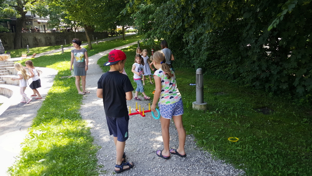V četrtek, 21.7.2016, smo zaključili s programom, ki se je začel 28.6.2016 in je zajemal 12 delavnic, ki so bile tematsko obarvane. Torkove delavnice smo odprli z lovom na zaklad, nato mu je sledilo ustvarjanje z glino ter miselne igre, ki so otroke zelo navdušile. Srede so bile jezikovno obarvane. Otroci so v štirih tednih imeli možnost spoznati štiri jezike in sicer začeli so z angleščino, nadaljevali s kitajščino in češčino ter zaključili s španščino. Ob četrtkih smo se potepali po našem biseru. Sprva smo se mudili na Mini golfu, nato smo se podali na Stražo in jo osvojili. Obiskali smo tudi gasilsko postajo Bled ter zaključili z medgeneracijskim druženjem na Blejskem gradu in v občinski stavbi.