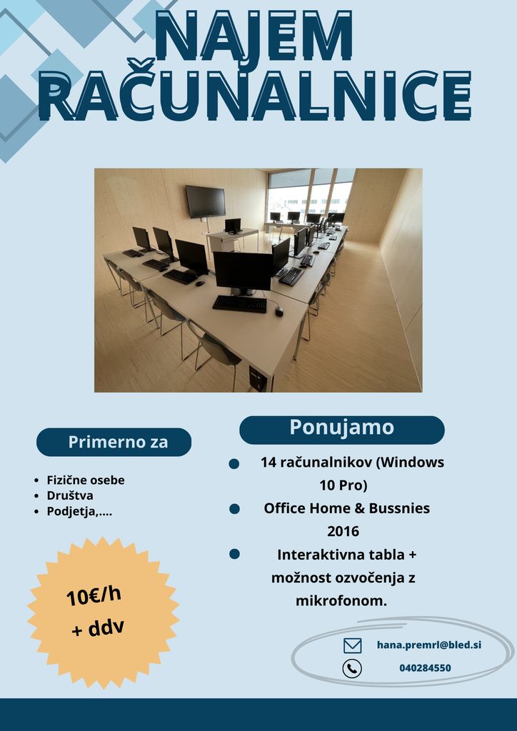 NAJEM RAČUNALNIŠKE UČILNICE V MEDGENERACIJSKEM CENTRU VEZENINE BLED