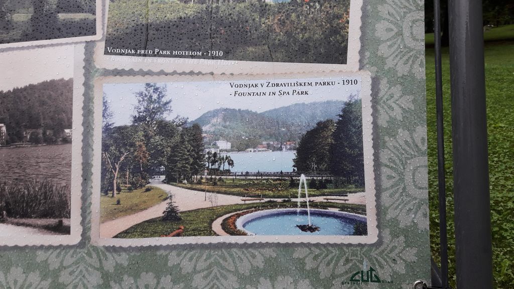 Že konec 19. stol sta blejske parke krasila dva vodometa, eden v Zdraviliškem parku, drugi pa je bil postavljen pred hotel Mallner, sedanji Park hotel. Tega iz Zdraviliškega parka že dolgo ni več, vodnjak pred Park hotelom pa je bil večkrat obnovljen, nazadnje leta 1991.