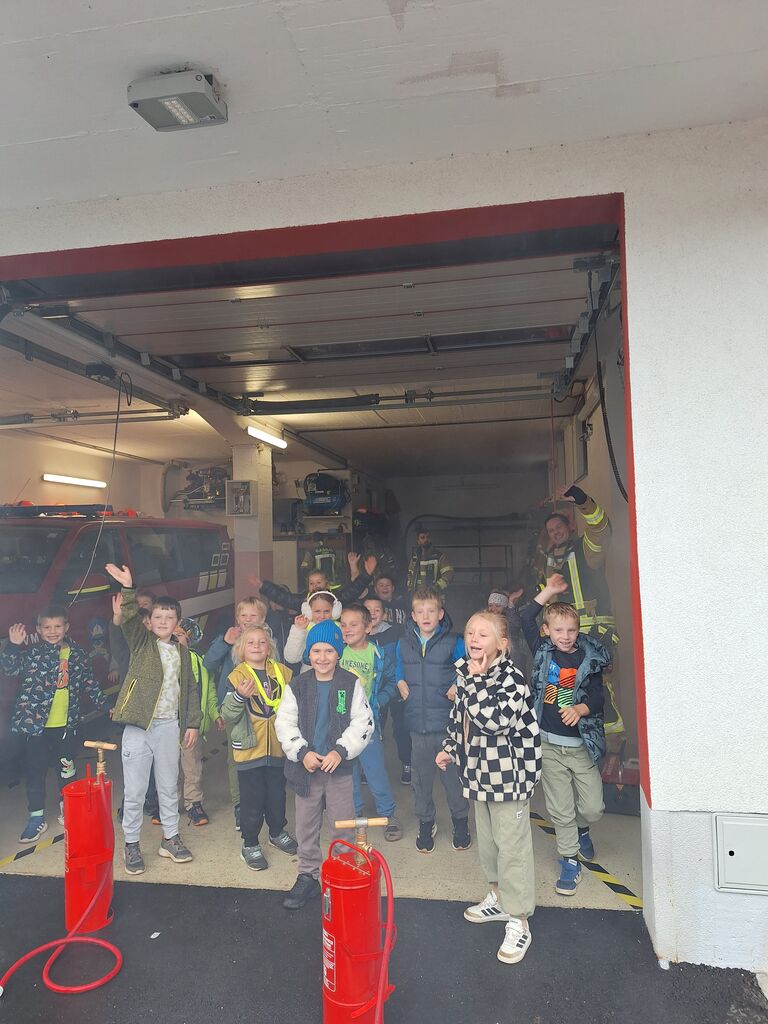 V tednu pred praznikom smo na šoli izvedli tudi požarno vajo v sodelovanju s PGD Ribno. Po zaključeni vaji so imeli prvošolci in drugošolci priložnost obiskati gasilski dom, kjer so jim gasilci predstavili svoje delo, opremo in pomen hitrega ter usklajenega odziva v primeru nevarnosti. Učenci so navdušeno poslušali razlage, preizkusili nekaj kosov opreme ter zastavili veliko radovednih vprašanj.