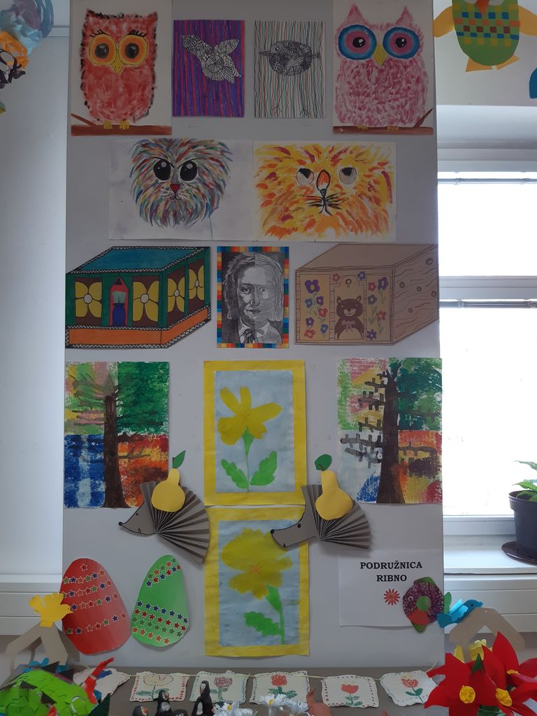V aprilu so v knjižnici svojo ustvarjalnost predstavili tudi učenci iz podružničnih šol Bohinjska Bela in Ribno. Malo časa so lahko preživeli v šoli s prizadevnimi mentoricami. Pisana paleta njihovih izdelkov dokazuje, da se otroci znajdejo v vsaki situaciji in pokažejo svojo kreativnost.