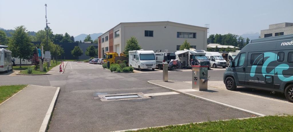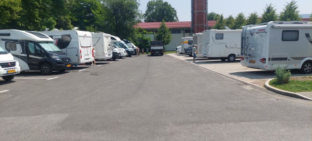je 56 parkirnih mest za osebna vozila, 12 za avtobuse in 16 za avtodome.