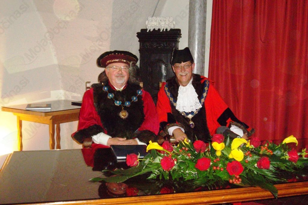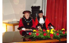 Podpis pogodbe na Blejskem gradu je bil zelo slavnosten, pa tudi prisrčen dogodek, saj so bili poleg obeh županov Janeza Fajfarja in Stefana Gawrysiaka (na fotografiji) ter njunih sodelavcev, prisotni tudi mladi veslači iz Henleya s svetovno prvakinjo Debbie Flood , naše veslače pa so zastopali Luka Špik, Jani Klemenčič, Sadik Mujkič ter selektor Miloš Janša in predsednik VK Bled dr. Peter Fajfar.
