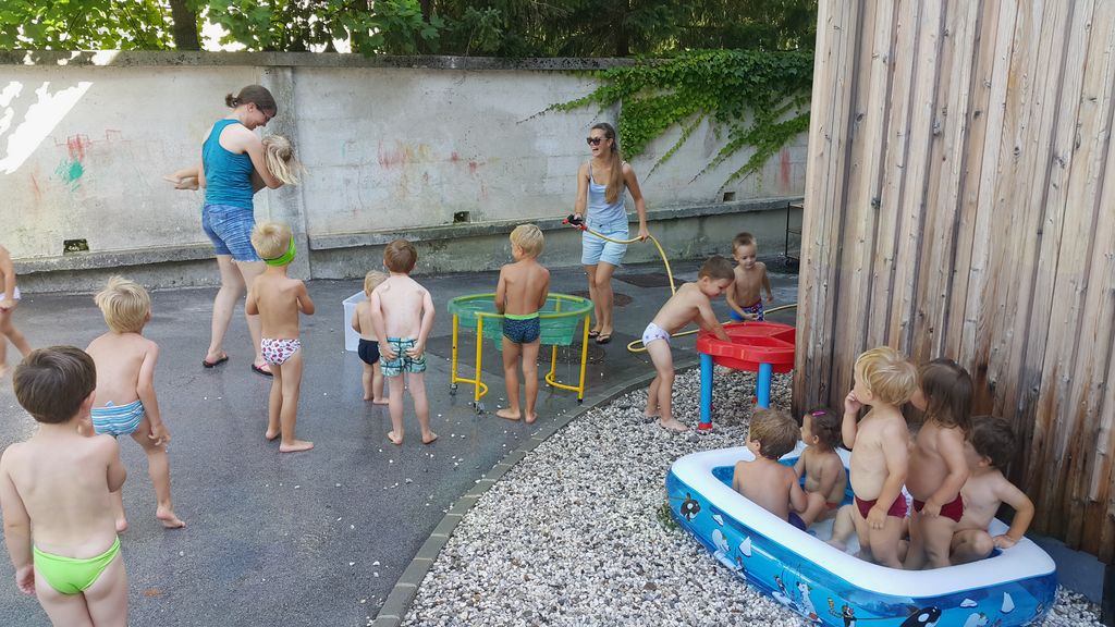 V poletnih dneh v vrtcu poskrbimo, da so dopoldnevi za otroke, ki obiskujejo vrtec, kar se da poletno obarvani in zabavni. Tako smo se igrali Indijance, gusarje, spoznavali morske živali, se dnevno igrali z vodo in si v prijetni senci igrišča ogledali igrico o mavrični ribici, ki je spoznala, da si srečnejši, ko stvari deliš s prijatelji.