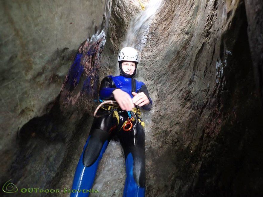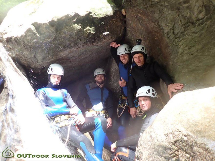 - Soteskanje v kanjonih Jerečice, izvedeno z Outdoor Slovenia in Adventure Rafting Bled, je postreglo z adrenalinskimi spusti po naravnih toboganih in slapovih.