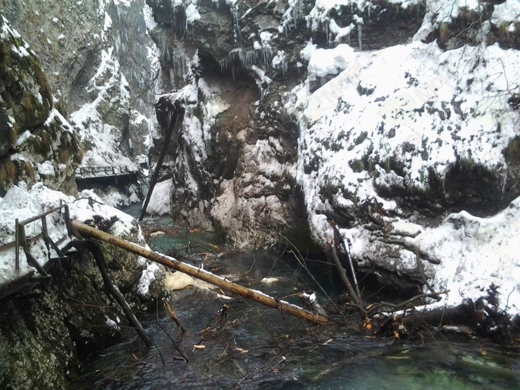 Podhom - Po nekaj dneh od ledenega objema je nekaj najpogumnejših članov Turističnega društva Gorje vstopilo v sotesko Vintgar, ki predstavlja pomemben del blejske turistične ponudbe.