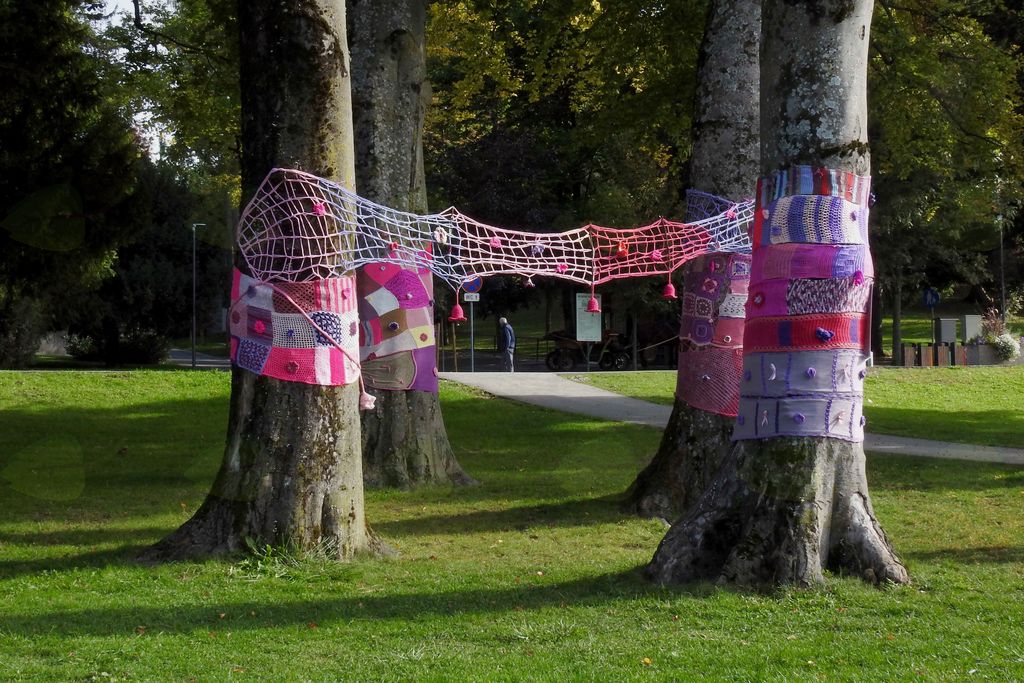 K boju proti raku na dojki je prispeval tudi Medgeneracijski center Bled. Gospe so tekom leta zbirale ideje in pletle rožnate pletenine, ki bodo ves oktober krasile drevesa pod Festivalno dvorano na Bledu.