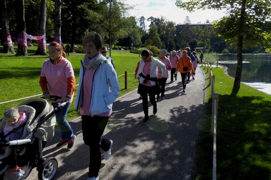 Pred pričetkom sprehoda smo z udeleženci spregovorili še nekaj besed o zdravem načinu življenja, ki pa ne vključuje le gibanja in prehrane, temveč tudi udeležba na preventivnih pregledih, zdravstveno-vzgojnih delavnicah in na nacionalnih presejalnih programih SVIT, ZORA in DORA. Potem pa smo se z rožnatimi pentljami, v boju proti raku na dojki, skupaj sprehodili okrog jezera.