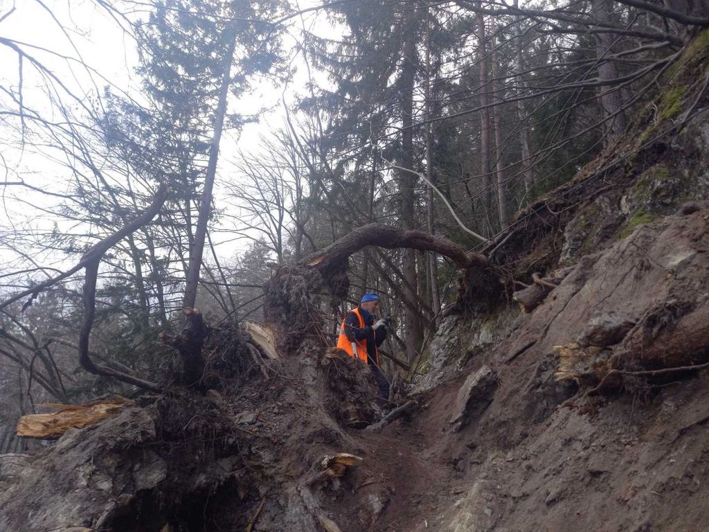 prazniki se je na poti do Male Osojnice zgodil manjši podor, vetrolom je