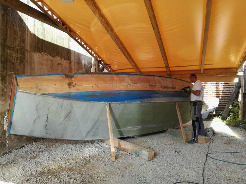 Anže je s svojo ekipo delal na treh čolnih na enkrat. '' Trenutno popravljamo čoln, ki ga je izdelal gospod Janez Polak pred desetimi leti, treba ga je renovirati,'' pripoveduje Anže, ko me vodi skozi svoje delavnice. ''In kako pogosto morajo čolni iz vode na remont?'', vprašam.